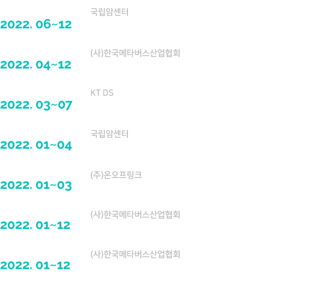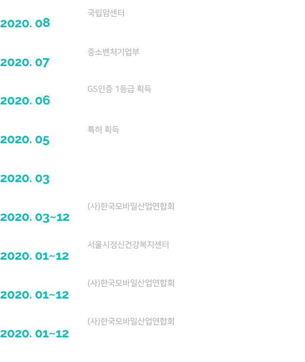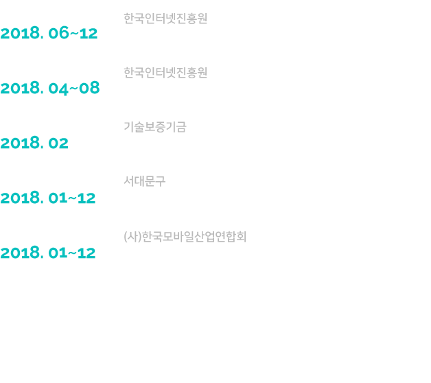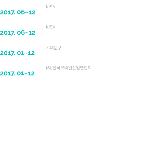 버스안심귀가서비스, NFC택시안심서비스, Standby-Care서비스등 BLE 및 NFC기반 네트웍 모바일 솔루션을 구축하여, 공공서비스 분야에서 다양한 서비스를 개발 제공하고 있습니다.